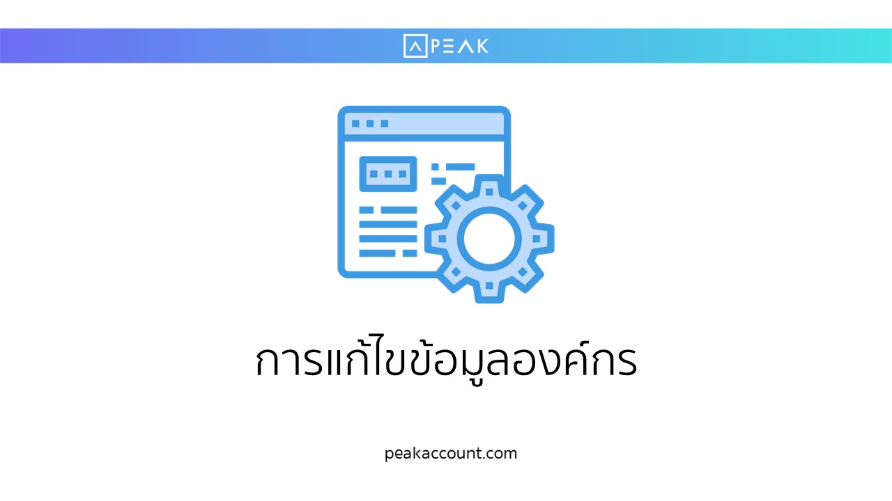 สามารถดูวิดิโอการแก้ไขข้อมูลองค์กรได้ที่ลิงก์ PEAK Account คลิปเดียวจบ ครบทุกการตั้งค่า วินาทีที่ 11:08