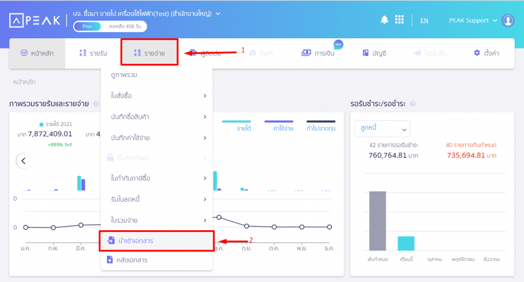 ขั้นตอนที่ 1 เข้าที่รายรับหรือรายจ่ายก็ได้ >> นำเข้าเอกสาร