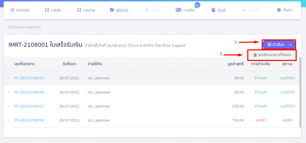 ขั้นตอนที่ 3 กดตัวเลือก >> ยกเลิกเอกสารทั้งหมด