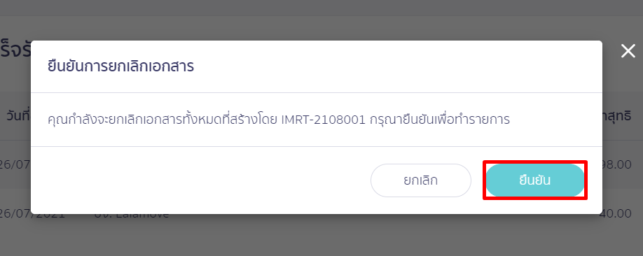 ขั้นตอนที่ 4 เมื่อกดยกเลิกเอกสารทั้งหมดแล้ว จะมีข้อความให้กดยืนยันอีกครั้ง ให้กด “ยืนยัน”