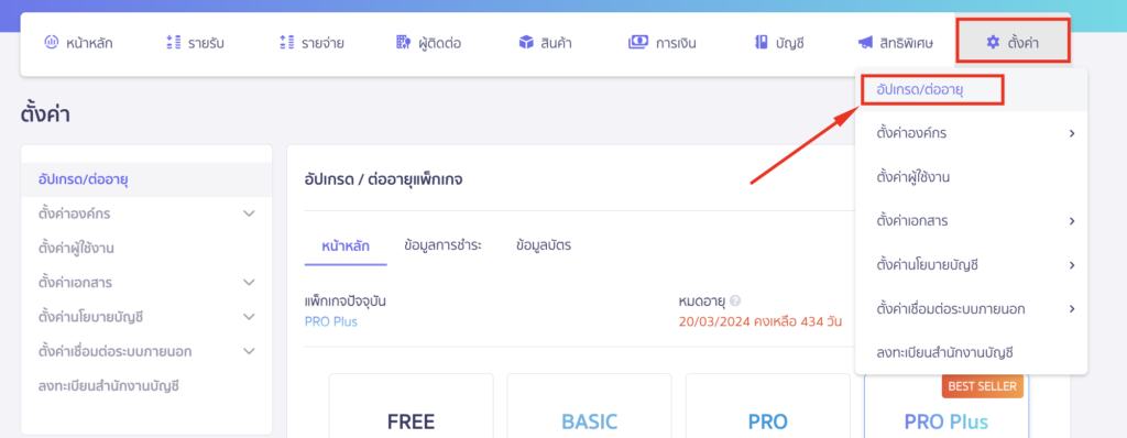 ขั้นตอนที่ 1: ไปที่เมนูตั้งค่า > อัปเกรด / ต่ออายุ