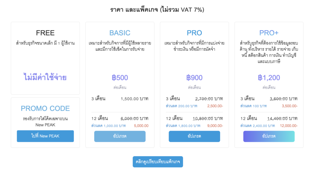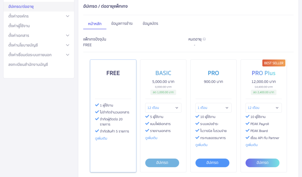 3. ระบบจะพาไปยังหน้าการอัปเกรด/ต่ออายุที่ New PEAK โดยท่านสามารถเลือก Package ที่ท่านสนใจ
