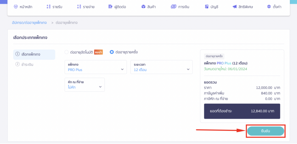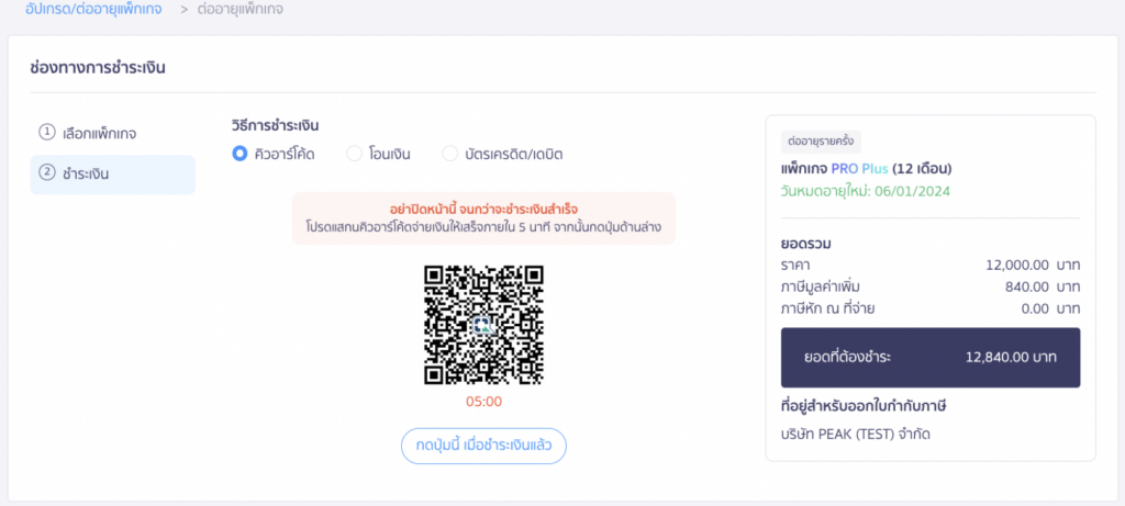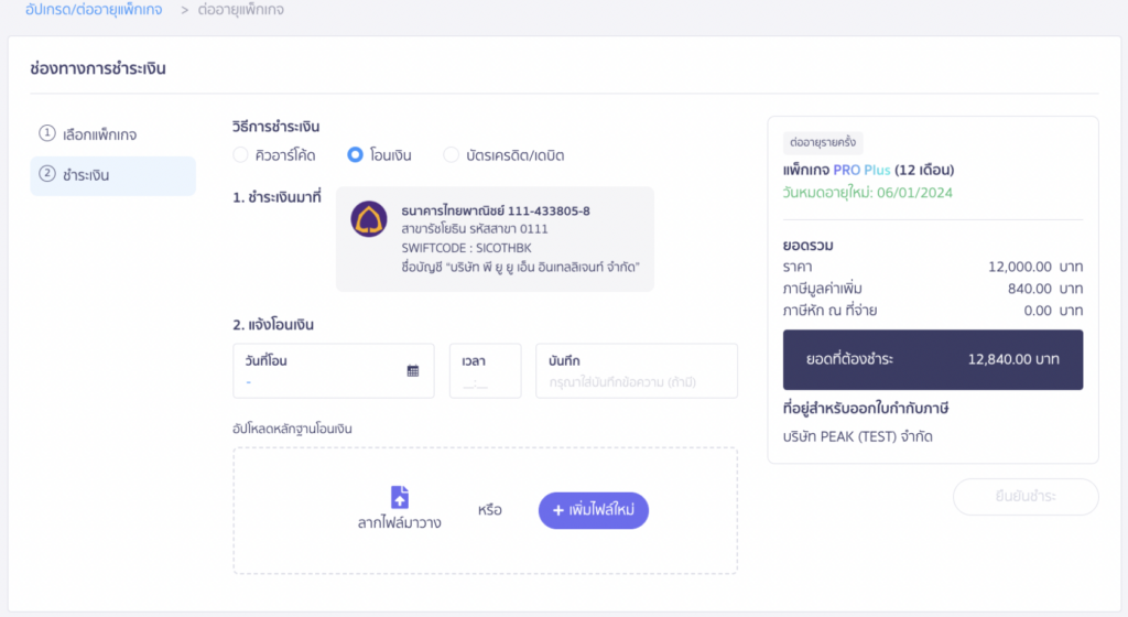4. เมื่อกดปุ่ม “อัปเกรด” หรือ “ต่ออายุ” แล้ว PEAK จะแสดงให้ตรวจสอบข้อมูล แล้วกดปุ่ม “ยืนยัน”